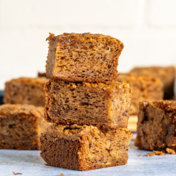 Banana bread butter mochi. Hawaiian butter mochi meets banana bread in this delicious, chewy snack bread that is a cross between two of my favorite things to bake. Mochiko rice flour makes this gluten free too!
