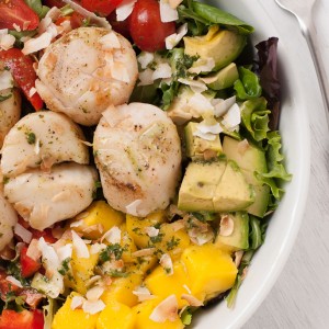 Tropical Scallop Salad with Avocado, Mango and Toasted Coconut