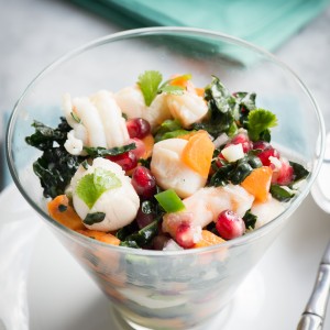 Wintertime Ceviche with Scallops, Pomegranate and Kale