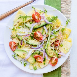 Fresh Pineapple, Avocado and Pea Shoot Salad