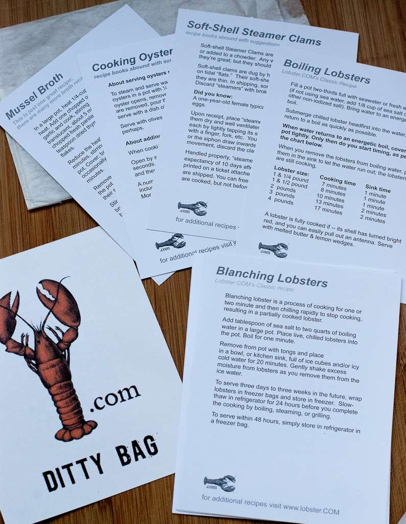 Seriously how sweet is this? A whole packet of different recipes and methods for not only the lobster they sell but other shellfish and crustaceans. This was such a life saver! And now I have more recipes I want to try, like the steamer clams, I LOVE steamer clams.