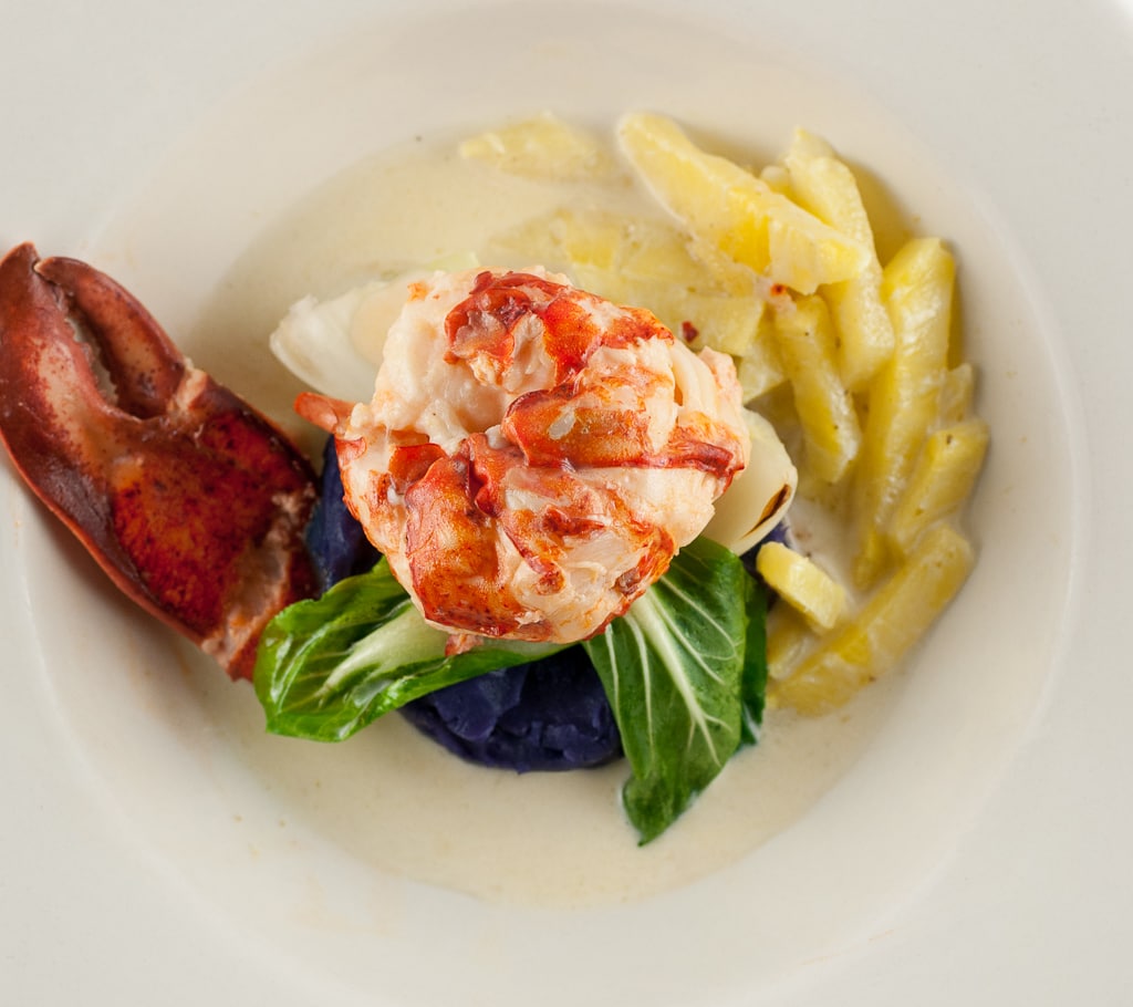 Coconut Butter Poached Lobster with Pineapple Green Curry Sauce