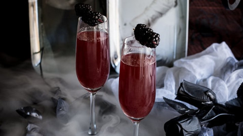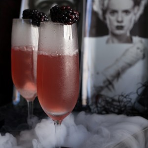 Bride of Frankenstein Cocktail - Vanilla Blackberry Champagne Cocktail
