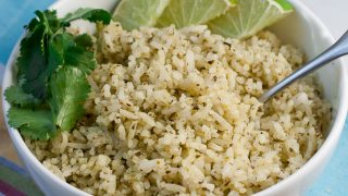 This cilantro lime rice is excellent served along side chicken, shrimp or steak, with enchiladas or tacos or served in burrito bowl.