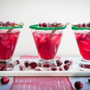 The sparkling sugared cranberries are a must for these cocktails as well as the green sugar rim.