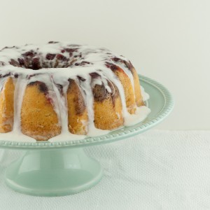 • Carefully pour ⅔ of the batter over the cranberries in the bundt pan, gently spreading to cover the cranberries well. Sprinkle the cranberry streusel mix in the middle of the batter layer, making sure none is on the inner or outer edges. Top with remaining batter, spreading it very gently to cover the streusel. Bake the cake for 40-50 minutes or until a toothpick inserted in the cake comes out clean or the tops springs back when pressed down gently. Let the cake cool for 5 minutes in the pan then invert onto a cooling rack. Let cool until the pan is cool to the touch and slowly remove the pan. Dark pans, such as cast iron bundt pans, retain heat and will “bake” the cake once out of the oven so you want to remove it as soon as you can, but not too soon or else it will stick to the pan. If any of the cake or cranberries stick to the bottom of the pan, scrape out and place back on the cake.