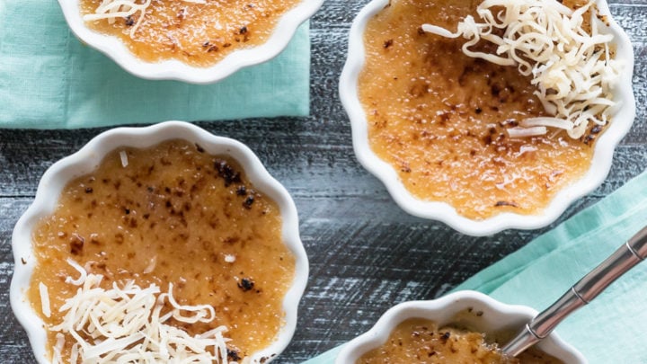 Vanilla White Chocolate Coconut Creme Brûlée is a decadent sweet treat perfect for a date night in. This recipe uses three different types of Nielsen Massey Vanillas in the form of Mexican Vanilla Extract, Bourbon Vanilla Bean paste and Vanilla sugar for the caramelized topping. Thanks to Nielsen Massey for sponsoring this post on behalf of Food Fanatic.