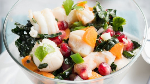 Wintertime Ceviche with Scallops, Pomegranate and Kale.