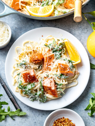 Creamy Lemon Vodka Sockeye Salmon Pasta with Arugula